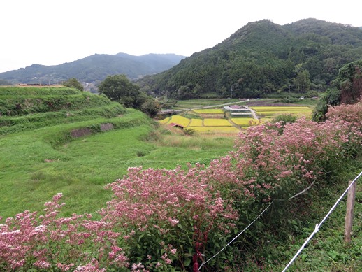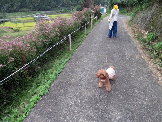棚田の農道沿いに、万葉集でも詠われる、秋の七草の藤袴(フジバカマ)が咲いています。奈良県でも中々、観ることが出来ない珍しい花です。🐶