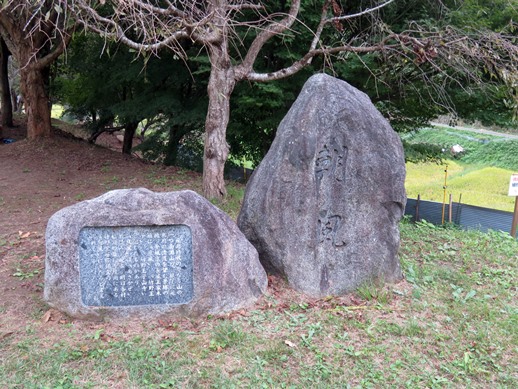 正面に望む山が南淵山。石碑にも書かれているように、神の住む山として「神奈備山(かんなびやま)」と呼ばれていたとの事です。