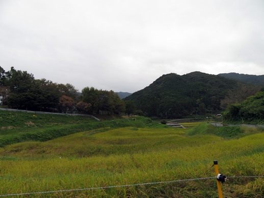 🟡朝風峠から見る神の住む山「南淵山」と棚田の稲穂