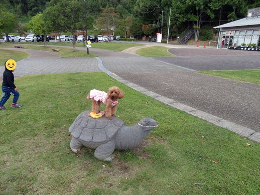 公園内にある唯一の遊具?親亀こけたら愛犬もこける?椅子のようです!