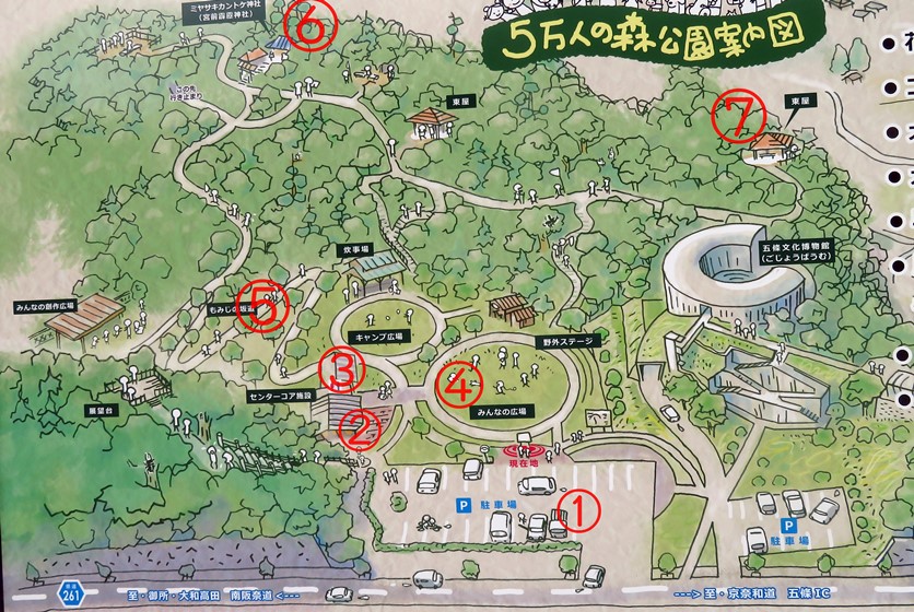 ・ 概要 平成19年に、将来、五條市の人口が5万人を目標に整備された公園で、その目標から「5万人の森公園」と命名されました。※令和5年9月現在の五條市の人口は約27600人。