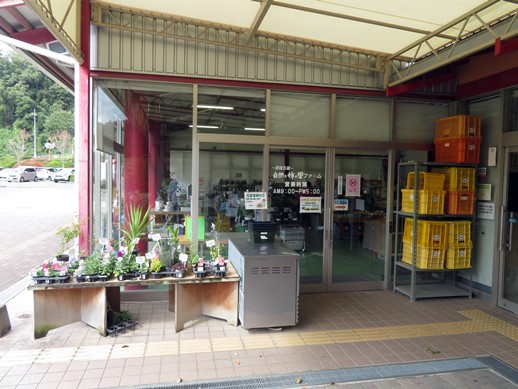 自然と柿の里ファーム入口。愛犬は入れませんが、地元が生産した新鮮な野菜が販売していました。五條市内の人も、買いに来ていました。