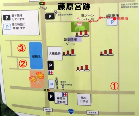 奈良県橿原市内大和八木駅前広場スタート14時00分→国道24号→橿原市役所東交差点→国道165号→国道166号→国道169号→藤原宮跡駐車場→徒歩 藤原宮跡→藤原宮跡駐車場→帰路