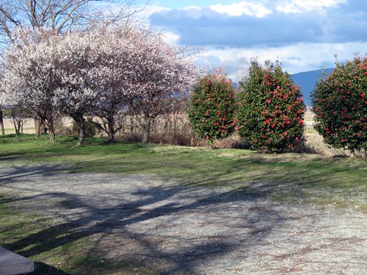 今年は、例年より早く暖かいので白梅は満開です。持統天皇が詠った「春過ぎて 夏きたるらし 白妙(しろたへ)の 衣(ころも)ほしたり 天(あま)の香具山(かぐやま)」の香久山が望めます。
