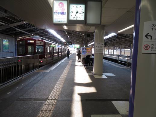 近鉄天理駅のホーム。玉木宏、綾瀬はるか、多部未華子などが出演していた2008年8月放送のフジテレビ「鹿男あおによし」のロケ地。