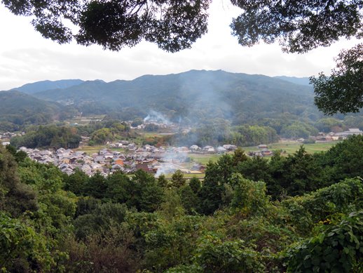明日香村内の飛鳥寺や飛鳥宮跡、稲刈りが終わった田畑など、いにしえの飛鳥の里の風景が眼下に広がります。