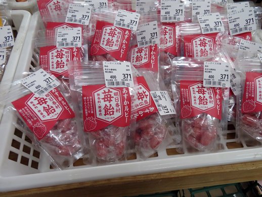 明日香村原産のいちご、あすかルビーを原材料にした苺飴。近所へお土産に配る手頃な商品です。