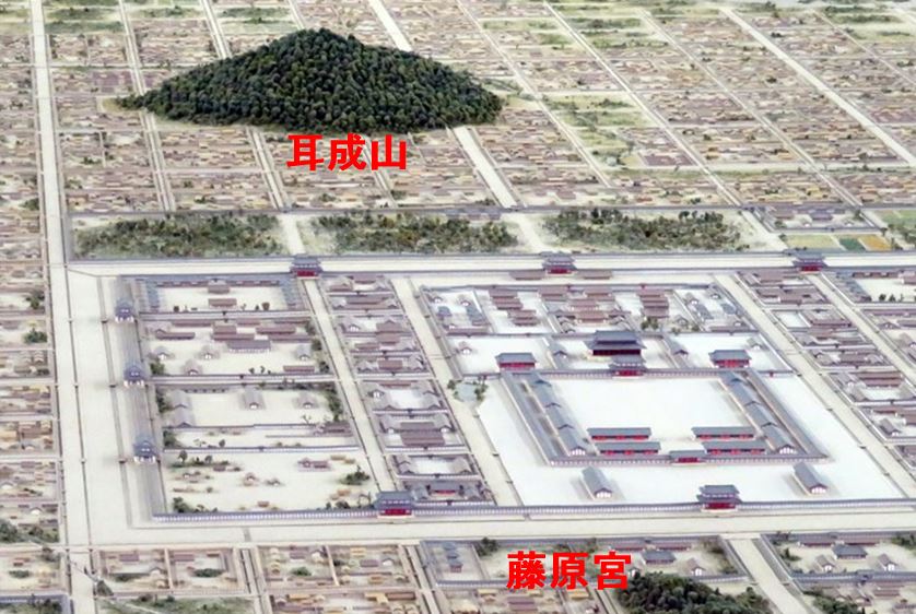 藤原宮跡は、894年から710年の16年間、持統・文武・元明の三代の天皇が治めた日本で始めての本格的な都。現在、耳成山、畝傍山、香久山が囲む東西約600m、南北約1kmの史跡。
