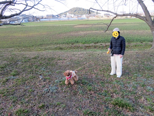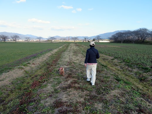 今後、菜の花が咲くと、両脇に菜の花が広がりその間を愛犬と散歩することができます。