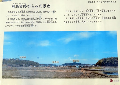 伝飛鳥板蓋宮跡(現、飛鳥宮跡)(以降、「飛鳥宮跡」と言う)の、現在見える箇所を望みます。