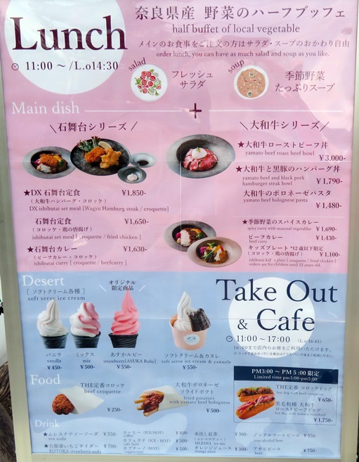 また、奈良県産野菜やスープとコロッケ付きのカレーや大和牛のローストビーフ丼などのランチが食べれます。