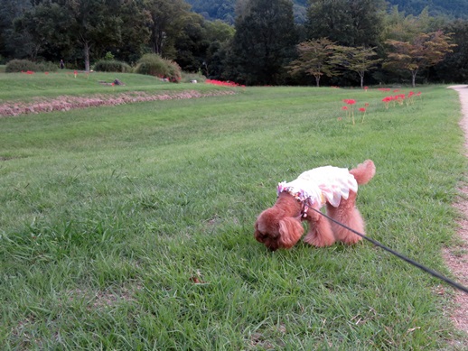 少し涼しくなり、秋の散歩には最適な時期になりました。愛犬🐶は、この芝生広場が大好きで、走り回つた後、秋の草の匂いを嗅ぐなど秋を満喫中です。