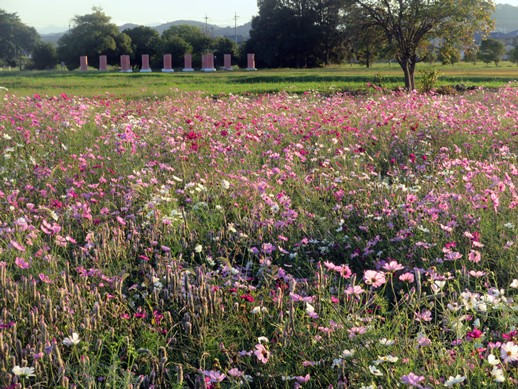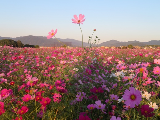 秋の風が心地よい季節。橿原市の藤原宮跡では、いま一面にコスモスが咲き誇っています。