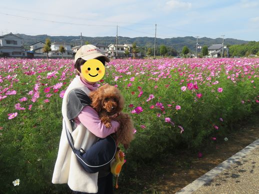 ピンク、白、濃い赤――色とりどりの花が風に揺れ、まるで秋の絨毯のように公園を覆っていました。